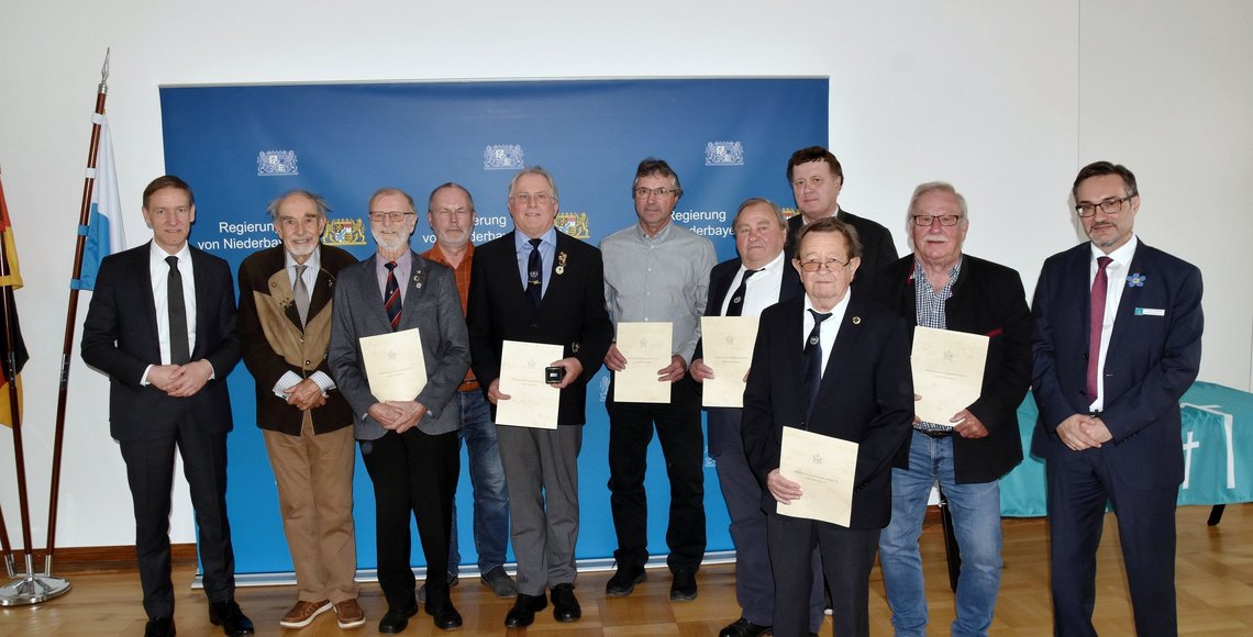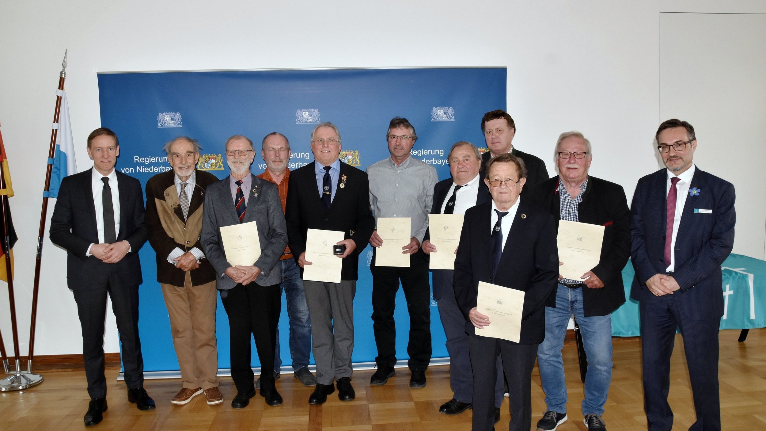 In großen Sitzungssaal der Regierung von Niederbayern fand auch dieses Jahr wieder der traditionelle Jahresempfang für die Sammlerinnen und Sammler aus dem Bezirksverband Niederbayern statt. Dazu geladen hatte der Bezirksverband Niederbayern im Volksbund Deutsche Kriegsgräberfürsorge. Als Gäste fanden sich neben dem Regierungspräsidenten von Niederbayern Rainer Haselbeck und dem Bezirksverbandsvorsitzenden für Niederbayern Regierungspräsident a. D. Dr. Walter Zitzelsberger u. A. auch ein für den Bezirksvorstand Niederbayern der Bereichsleiter Schulen Ralf Reiner und Abteilungsdirektor a. D. Franz Schneider, die stellvertretenden Landräte Helga Weinberger (Landkreis Freyung-Grafenau), Ludwig Wachs (Landkreis Kehlheim), Josef Färber (Landkreis Deggendorf), Fritz Wittmann (Landkreis Landshut), für den VdRBw im Bezirksverband Niederbayern Christiane Loferer, der Bezirksvorsitzende des BKV für Niederbayern Josef Simmeth, für die Bundeswehr die Sammlungsleiter Stabsfeldwebel Marcel Dymke (Standort Regen), Stabsfeldwebel Dieter Schröfl (Standort Feldkirchen) und Christin Hornauer (Standort Bogen), für die Stadt Landshut der Leiter des Kulturamtes Benedikt Schramm. Der Bezirksgeschäftsführer für die Bezirksverbände Oberpfalz und Niederbayern Dr. Dario Vidojković moderierte die Veranstaltung.